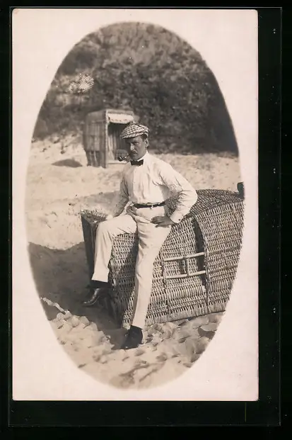AK Mann auf einem Strandkorb am Meer