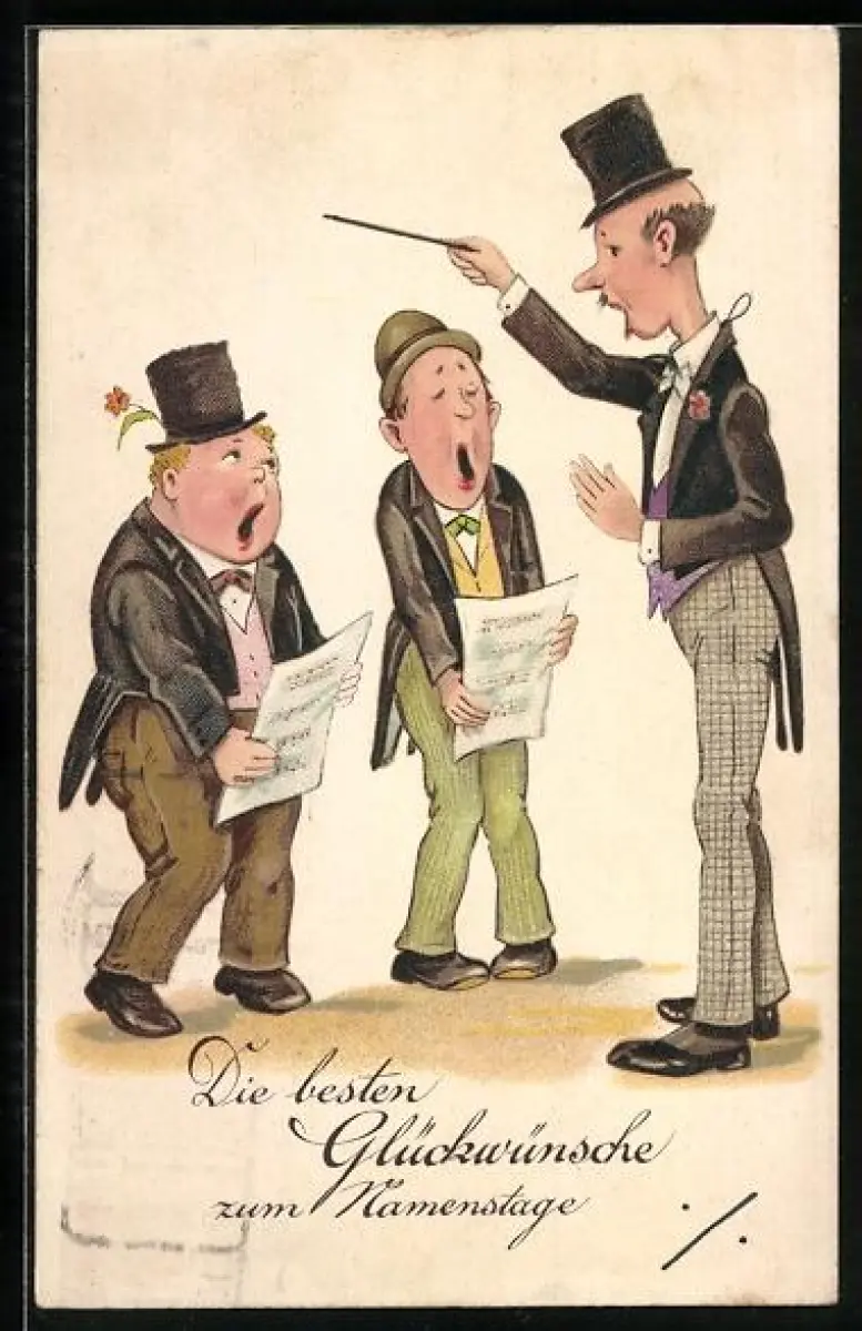 AK Mann dirigiert zwei Sänger, Glückwunsch zum Namenstag, Sängerfest