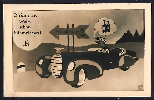 AK Mann fährt im Auto nach Grinzing