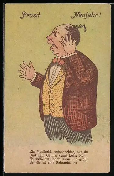AK Mann fasst sich an den Kopf, Scherz, Neujahrsgruss