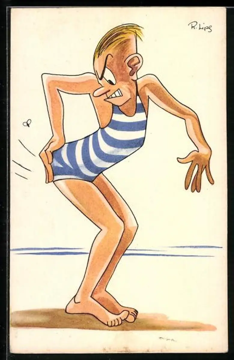 AK Mann im Badeanzug wird gestochen