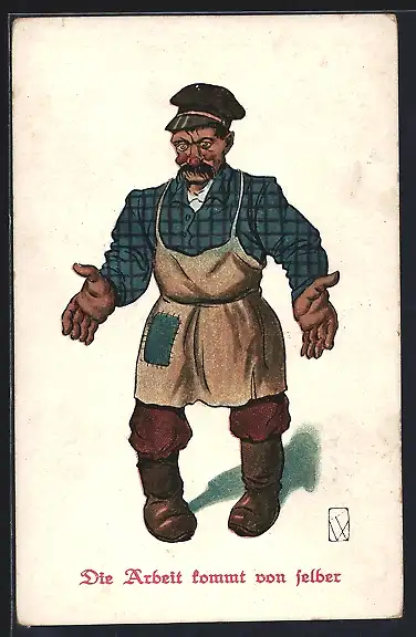 AK Mann in Arbeitskleidung, Die Arbeit kommt von selber