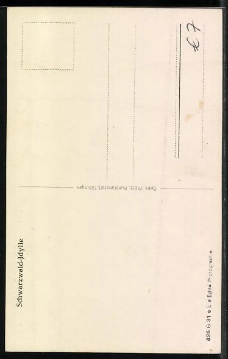 Personenbezogene Daten auf der Rückseite der Karte wurden durch blauen Textmarker unkenntlich gemacht. Die blauen Stellen sind auf die Vorderseite durchgeweicht und wirken sich negativ auf das Postkartenfoto aus