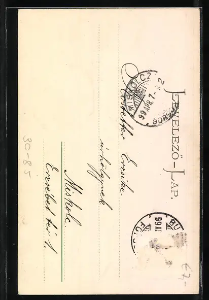 Personenbezogene Daten auf der Rückseite der Karte wurden durch blauen Textmarker unkenntlich gemacht. Die blauen Stellen sind auf die Vorderseite durchgeweicht und wirken sich negativ auf das Postkartenfoto aus