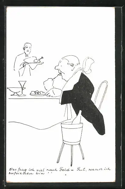 AK Mann isst zufrieden in einem Restaurant