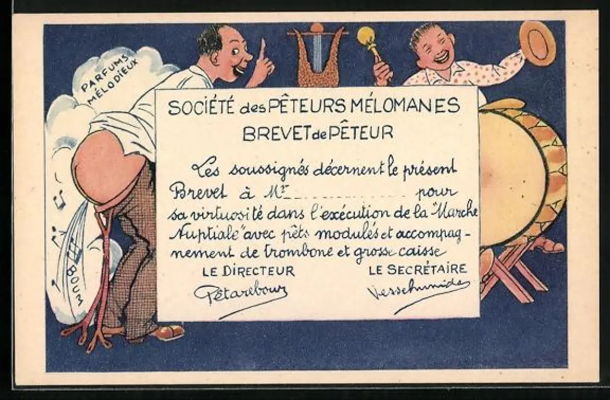 AK Mann ist auf Toilette und pupst, ein Musiker versucht das mit Musik zu überspielen