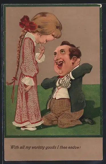 AK Mann kniet vor seiner Angebeteten und gesteht ihr seine Liebe, Scherz