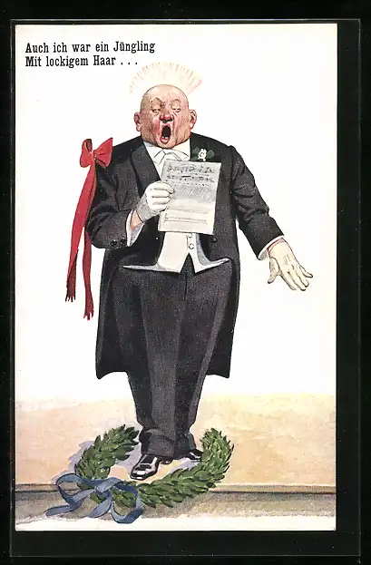 AK Mann mit Glatze stimmt ein Lied an, Auch ich war ein Jüngling mit lockigem Haar... Scherz