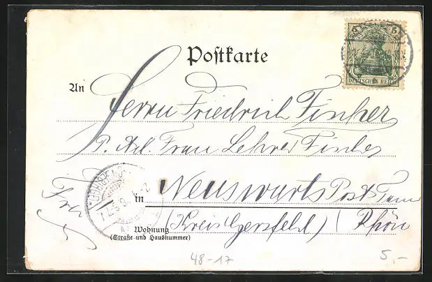 alte Ansichtskarte, gelaufen 1906, Stempelspur, kleiner Einriss re. unten, sonst guter Zustand
