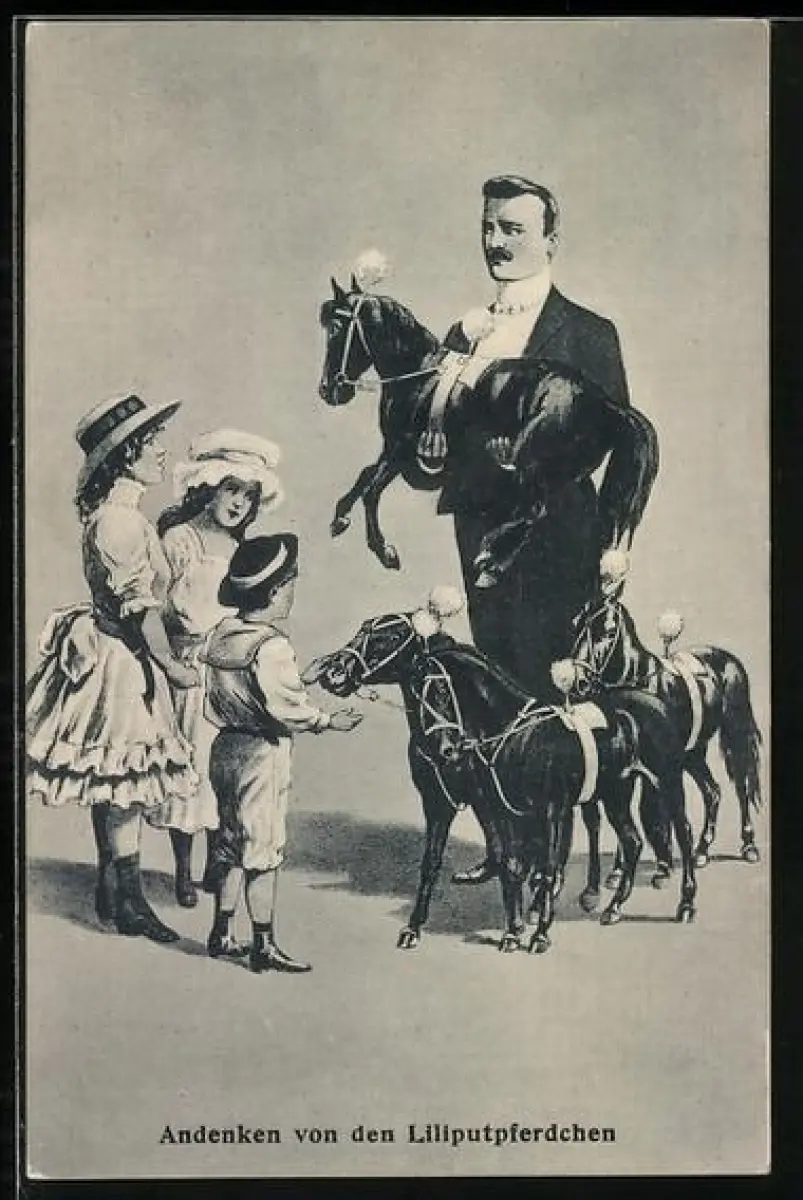 AK Mann mit Kindern und Liliputpferdchen