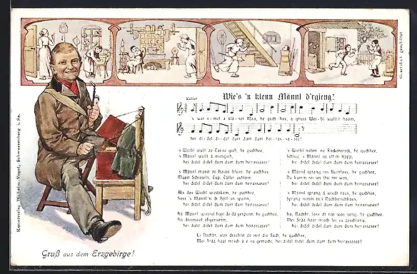 AK Mann mit Leierkasten, Liedtext, Wie`s `n klenn Männl d`rgieng!
