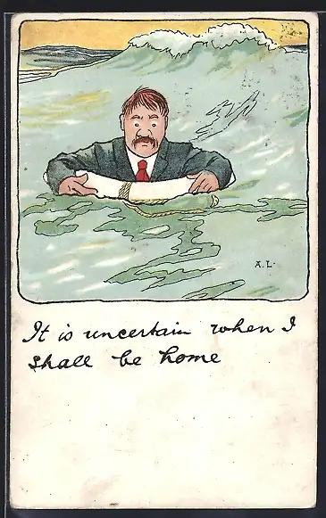 AK Mann mit Rettungsreifen im Meer, Scherz