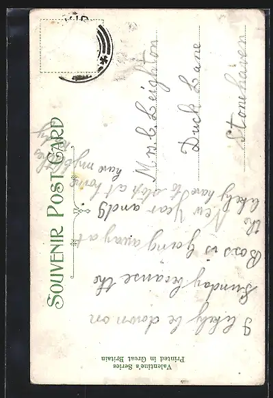 alte Ansichtskarte, gelaufen, Briefmarke entfernt, rückseitig Oberflächenschaden, Stempelspur, guter Zustand