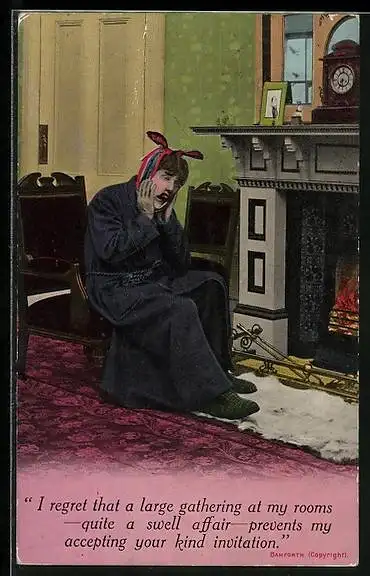 AK Mann mit Zahnschmerzen auf einem Stuhl, I regret that a large gathering at my room- quite a swell affair-...