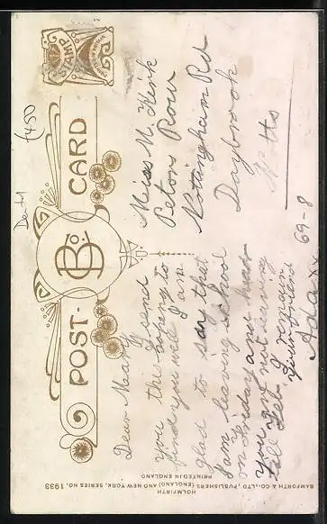 alte Ansichtskarte, ungelaufen, rückseitig Oberflächenschaden, Briefmarke entfernt, guter Zustand