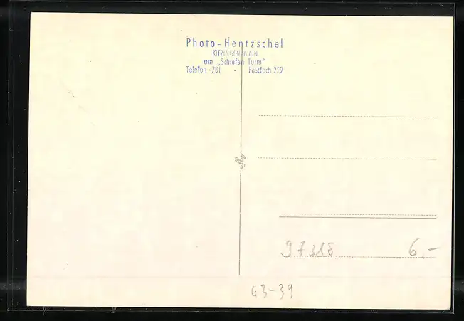 Personenbezogene Daten auf der Rückseite der Karte wurden durch blauen Textmarker unkenntlich gemacht. Die blauen Stellen sind auf die Vorderseite durchgeweicht und wirken sich negativ auf das Postkartenfoto aus