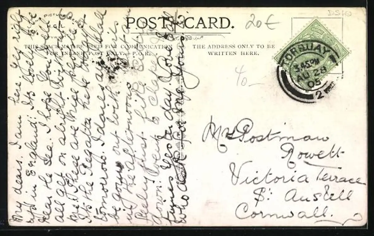 gelaufen 1905, Eckknicke li. oben u. re. unten, guter Zustand