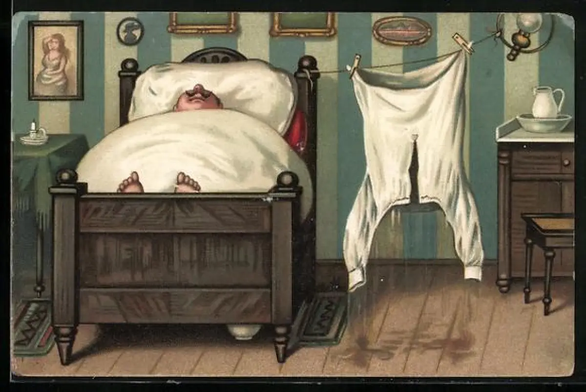 AK Mann schläft neben einer Wäscheleine mit nassem Hemd