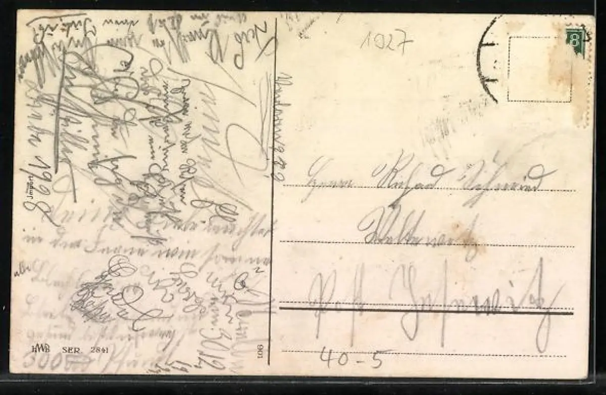 alte Ansichtskarte, gelaufen, Briefmarke entfernt, rückseitig Oberflächenschaden, guter Zustand