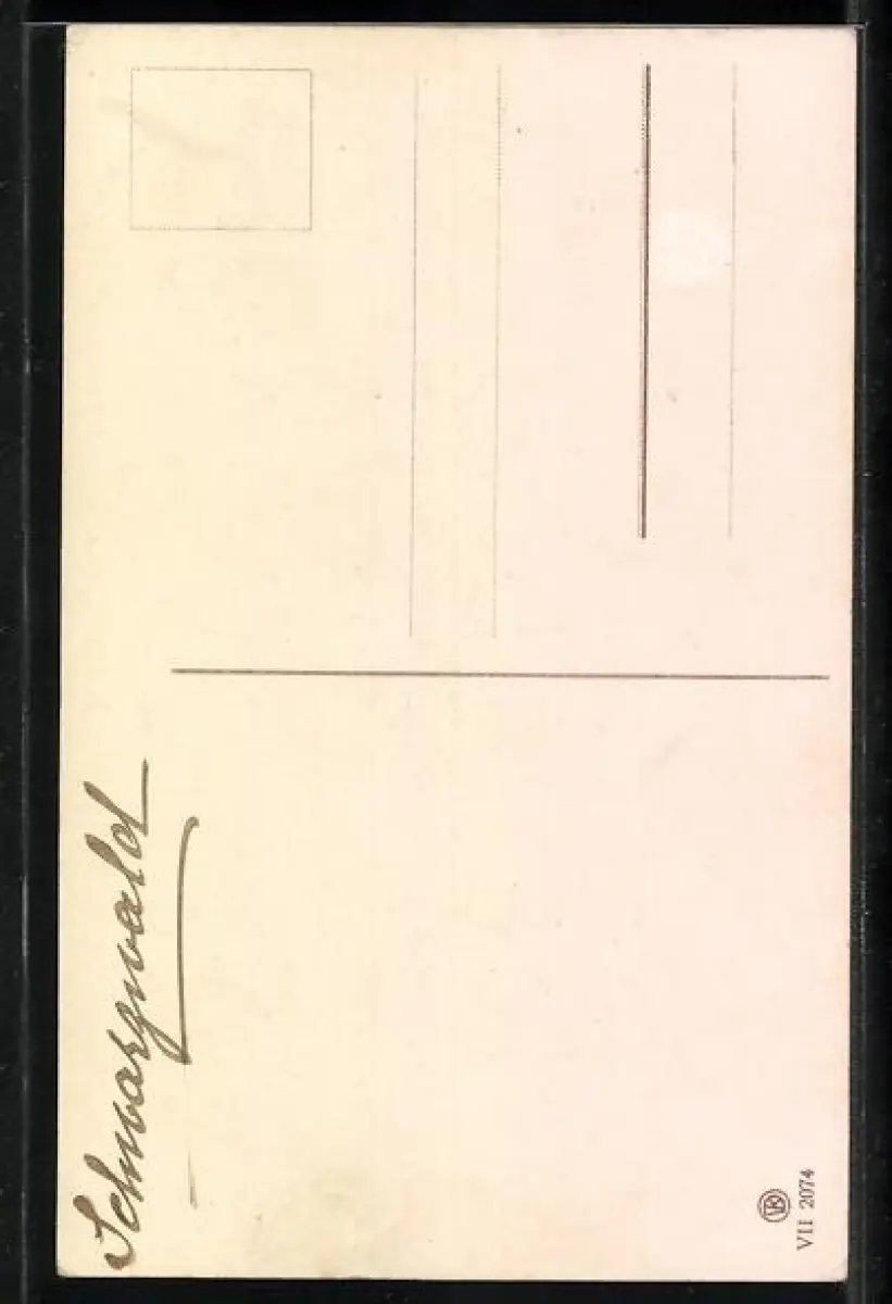 Personenbezogene Daten auf der Rückseite der Karte wurden durch blauen Textmarker unkenntlich gemacht. Die blauen Stellen sind auf die Vorderseite durchgeweicht und wirken sich negativ auf das Postkartenfoto aus