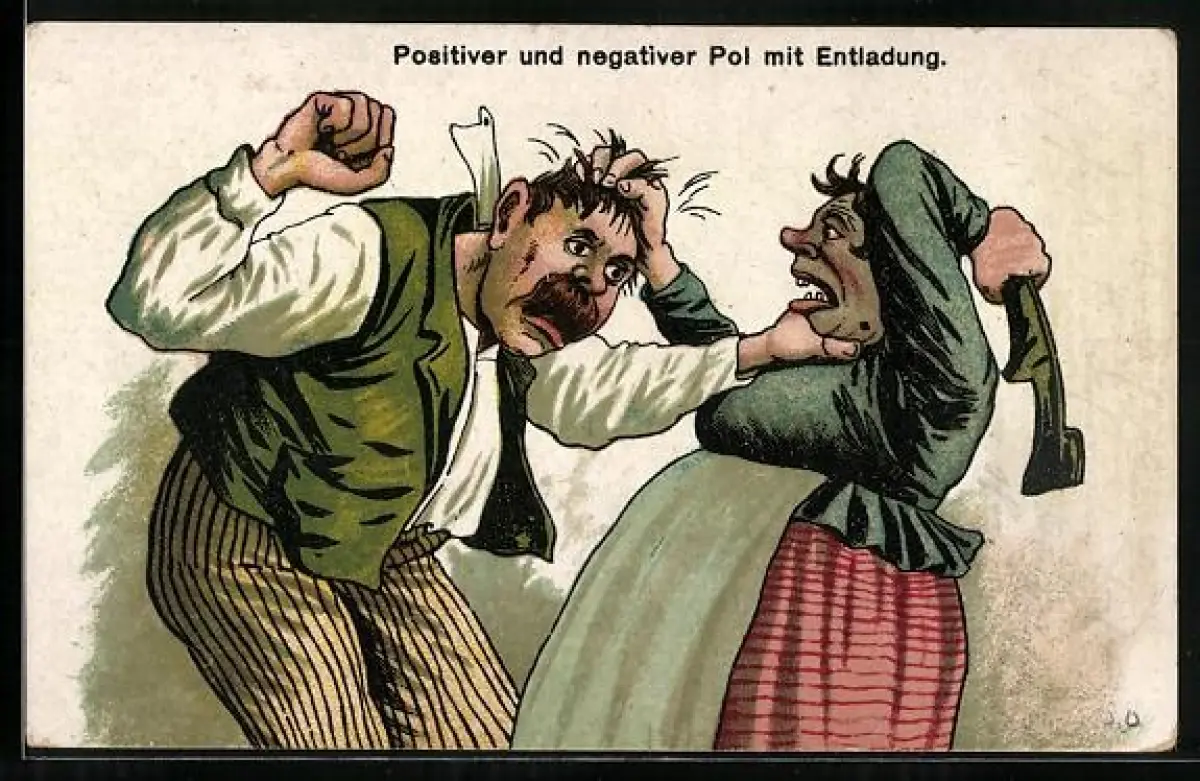 AK Mann und Frau streiten sich, frauenfeindlicher Humor