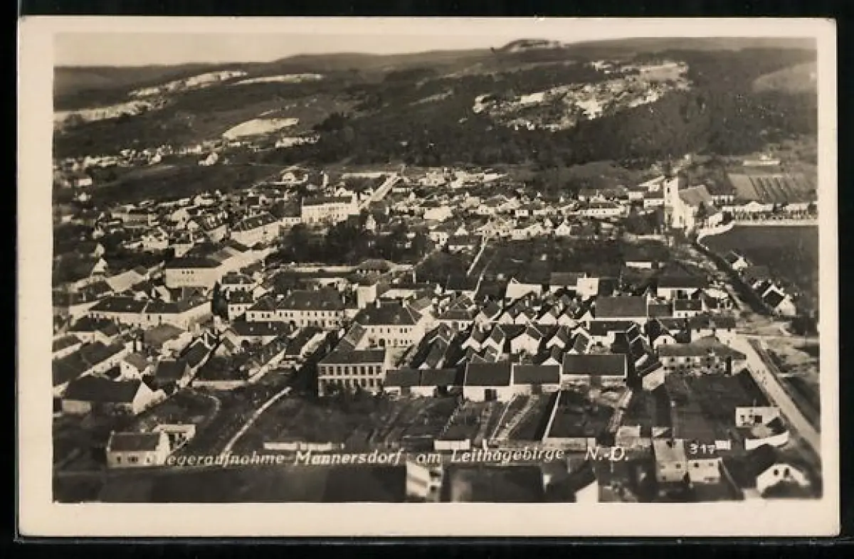 AK Mannersdorf am Leithagebirge, Luftaufnahme des Ortes