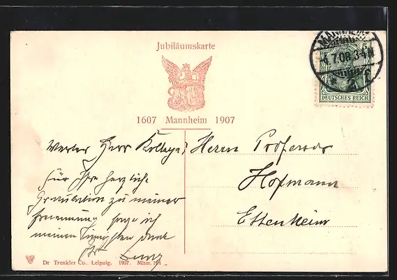 alte Ansichtskarte, gelaufen 1908, Stempelspur, guter Zustand