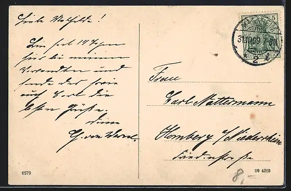 alte Ansichtskarte, gelaufen 1909, Stempelspur, guter Zustand