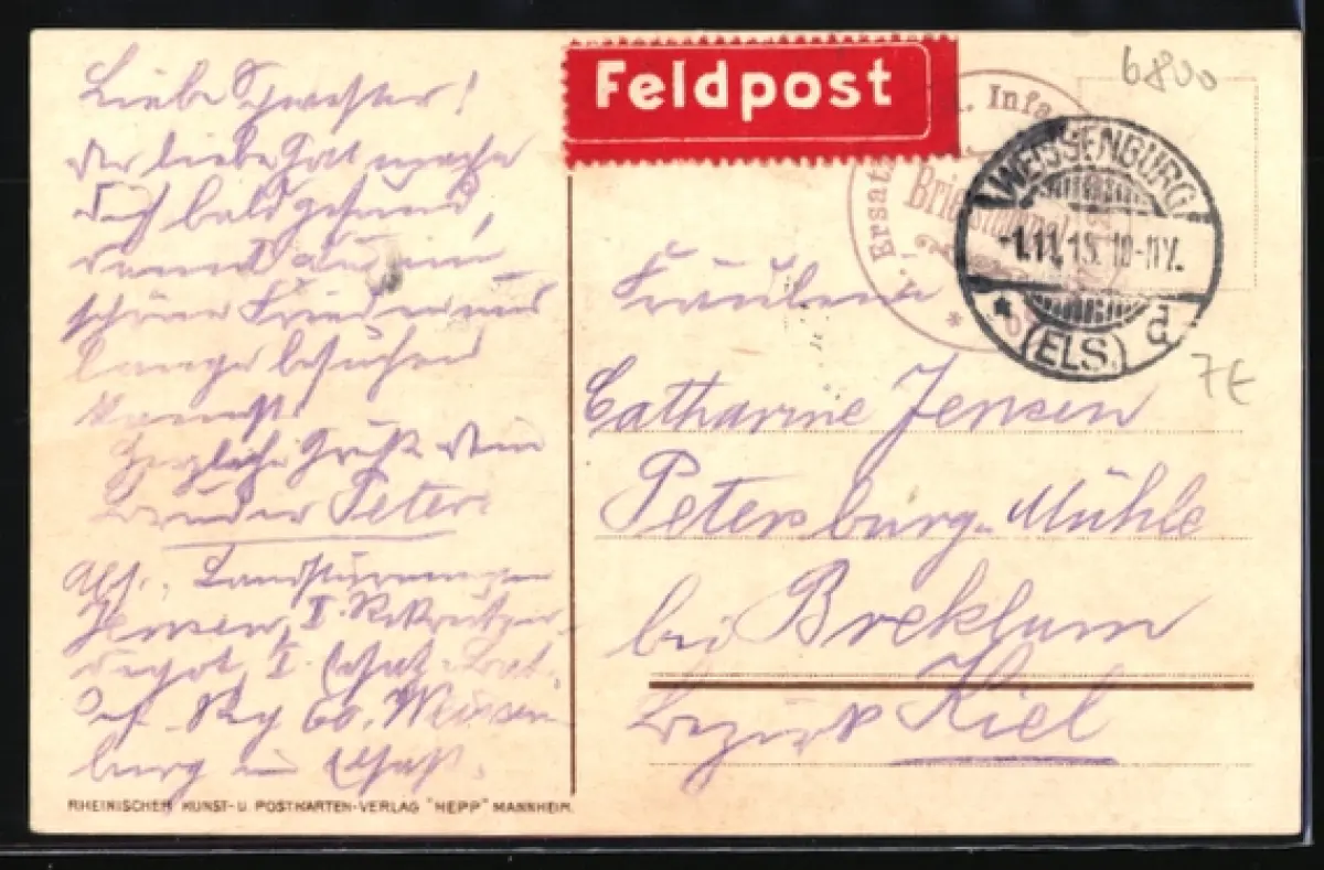 alte Ansichtskarte, gelaufen, rückseitig Klebe- und Papierreste, guter Zustand