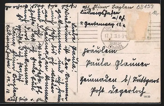gelaufen 1918, Einriss li. oben, Briefmarke entfernt, rückseitig Oberflächenschaden, guter Zustand
