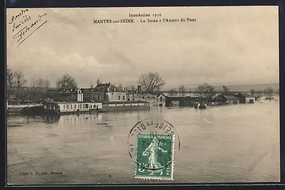 AK Mantes-sur-Seine, Inondation 1910, La Seine à l`Amount du Pont