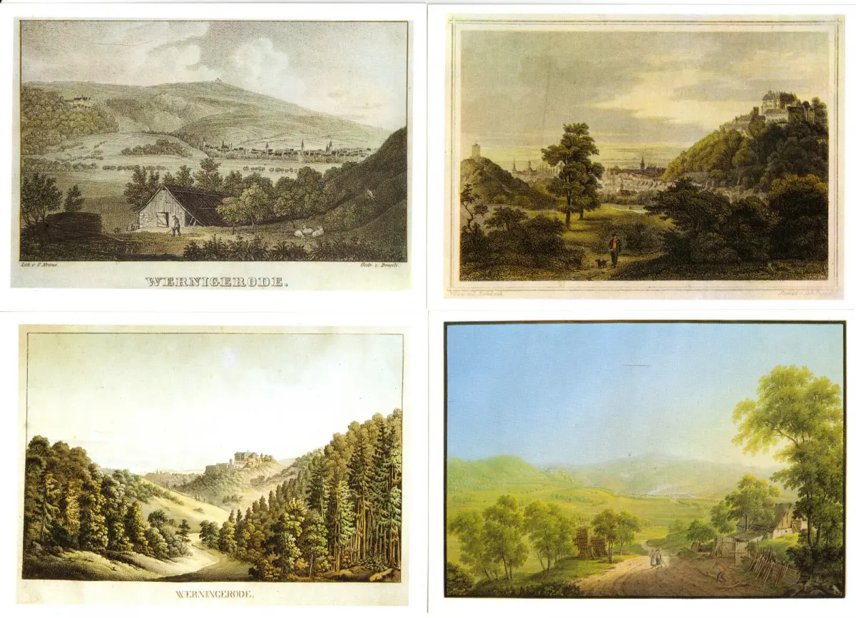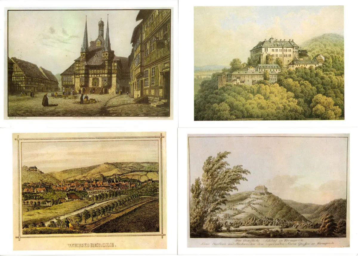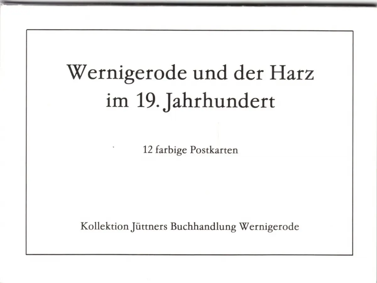 Ansichtskarten-Mappe12 Color-AnsichtskarteWernigerode und der Harz im 19. Jahrhundert Erhaltung I-II ungelaufen Druckvermerk: um 1990 Verlag: Kollektion Jüttners Buchhandlung, Wernigerode Der