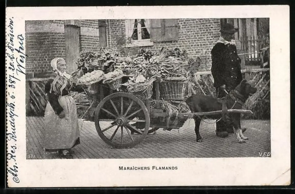 AK Maraîchers Flamands, Flämische Gemüseverkäuferin mit Hundegespann