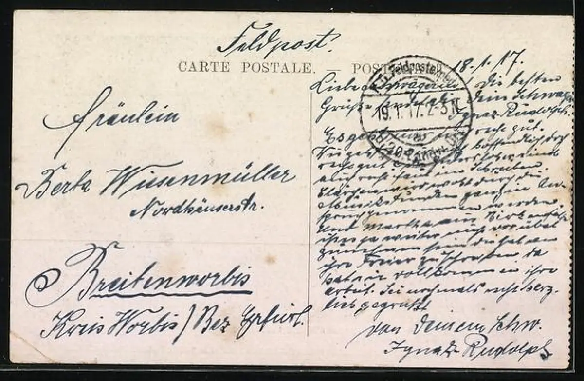 alte Ansichtskarte, gelaufen 1917, Eckknick re. unten, guter Zustand