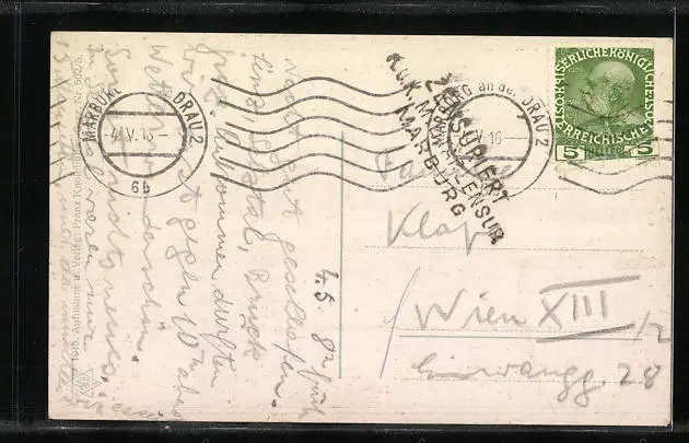 alte Ansichtskarte, gelaufen 1916, Stempelspur, guter Zustand