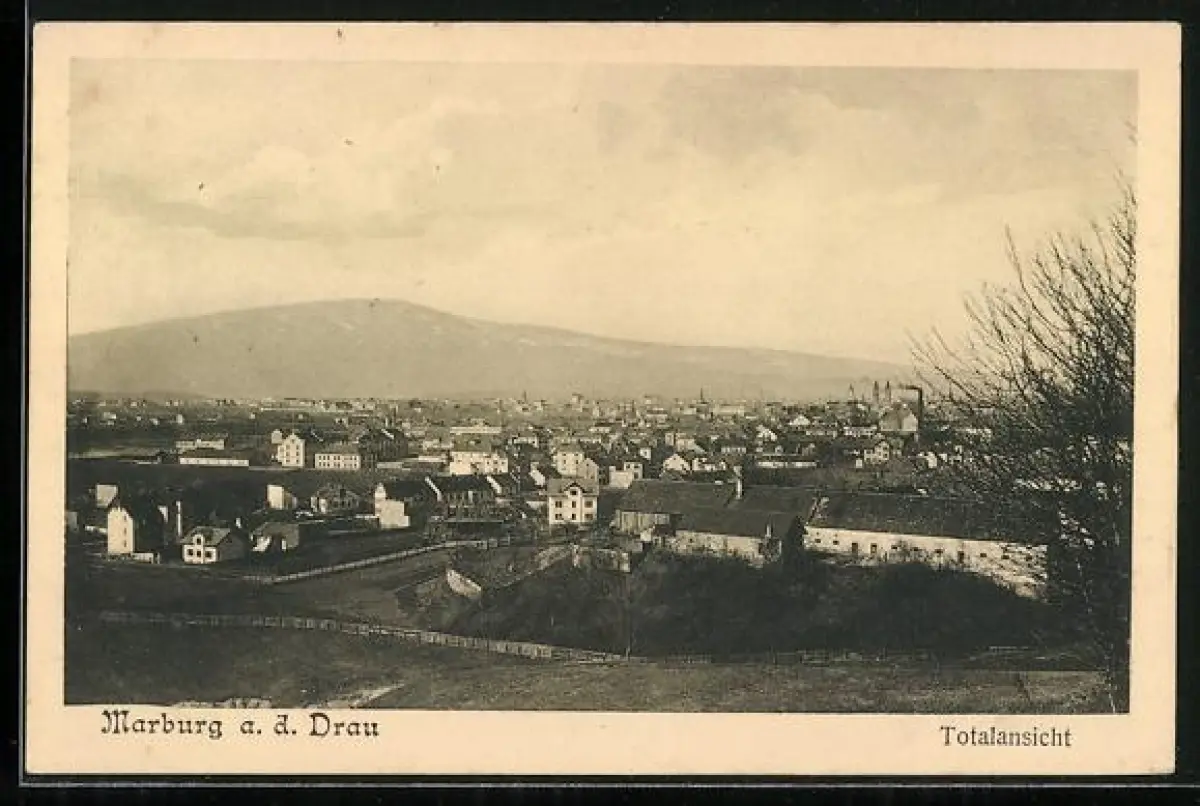 AK Marburg a. Drau, Totalansicht mit Bergblick