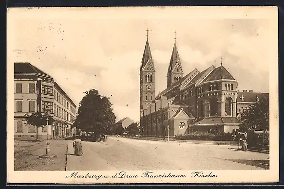AK Marburg a. d. Drau, Blick auf die Franziskaner Kirche
