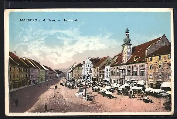 AK Marburg a. d. Drau, Markt am Hauptplatz