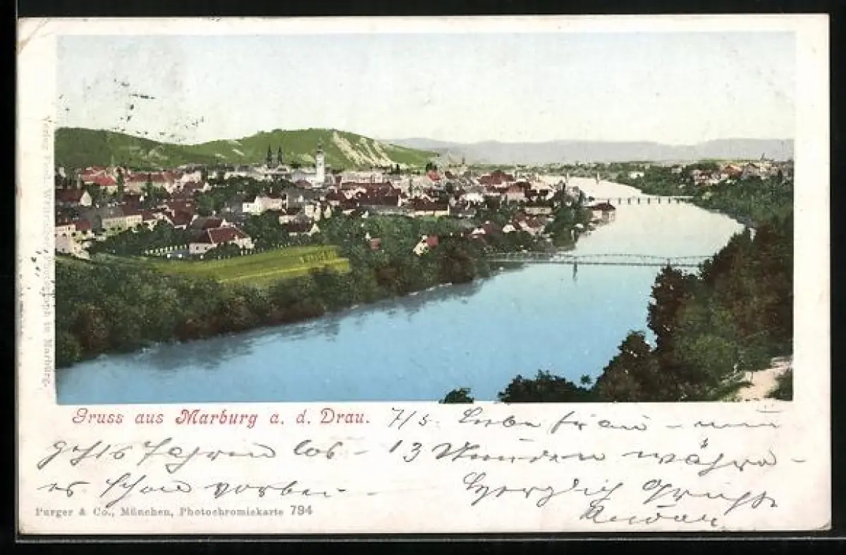 AK Marburg a. d. Drau, Ortsansicht aus der Vogelschau