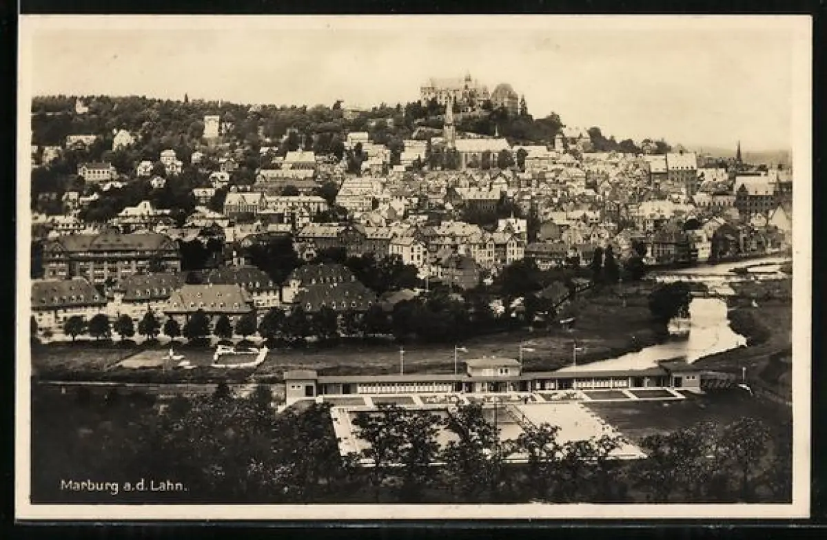 AK Marburg a. d. Lahn, Schloss, Stadtansicht, Freibad