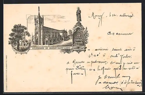 AK Marcay, Pèlerinage de Marcay-Saint-Libare avec église et statue monumentale