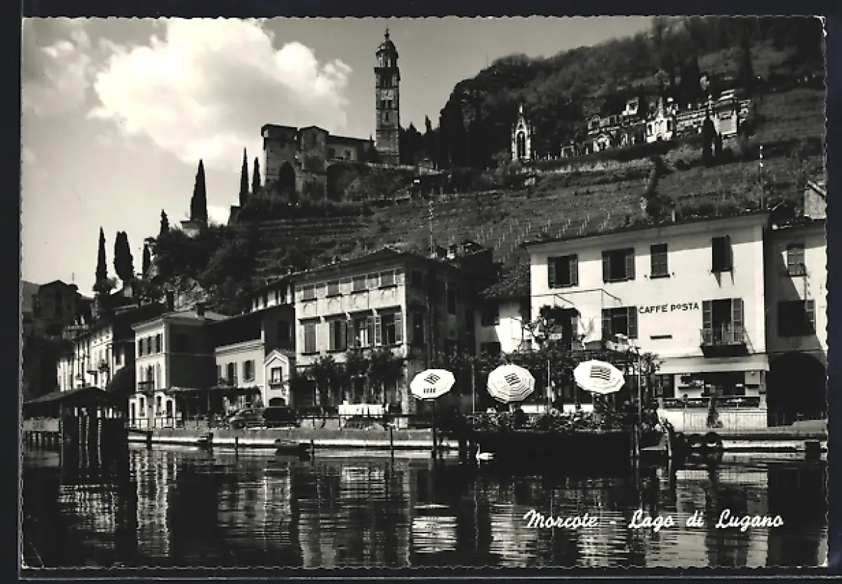 AK Marcote /Lago di Lugano, Panorama & Caffe Posta