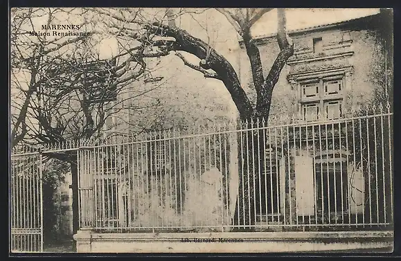 AK Marennes, Maison Renaissance avec arbre et clôture en fer forgé