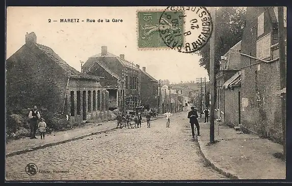 AK Maretz, Rue de la Gare avec habitants et charrette
