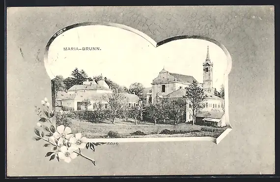 AK Maria-Brunn, Teilansicht mit Blick auf die Kirche