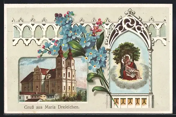 AK Maria Dreieichen, Basilika, Heiligenbild, Vergissmeinnicht