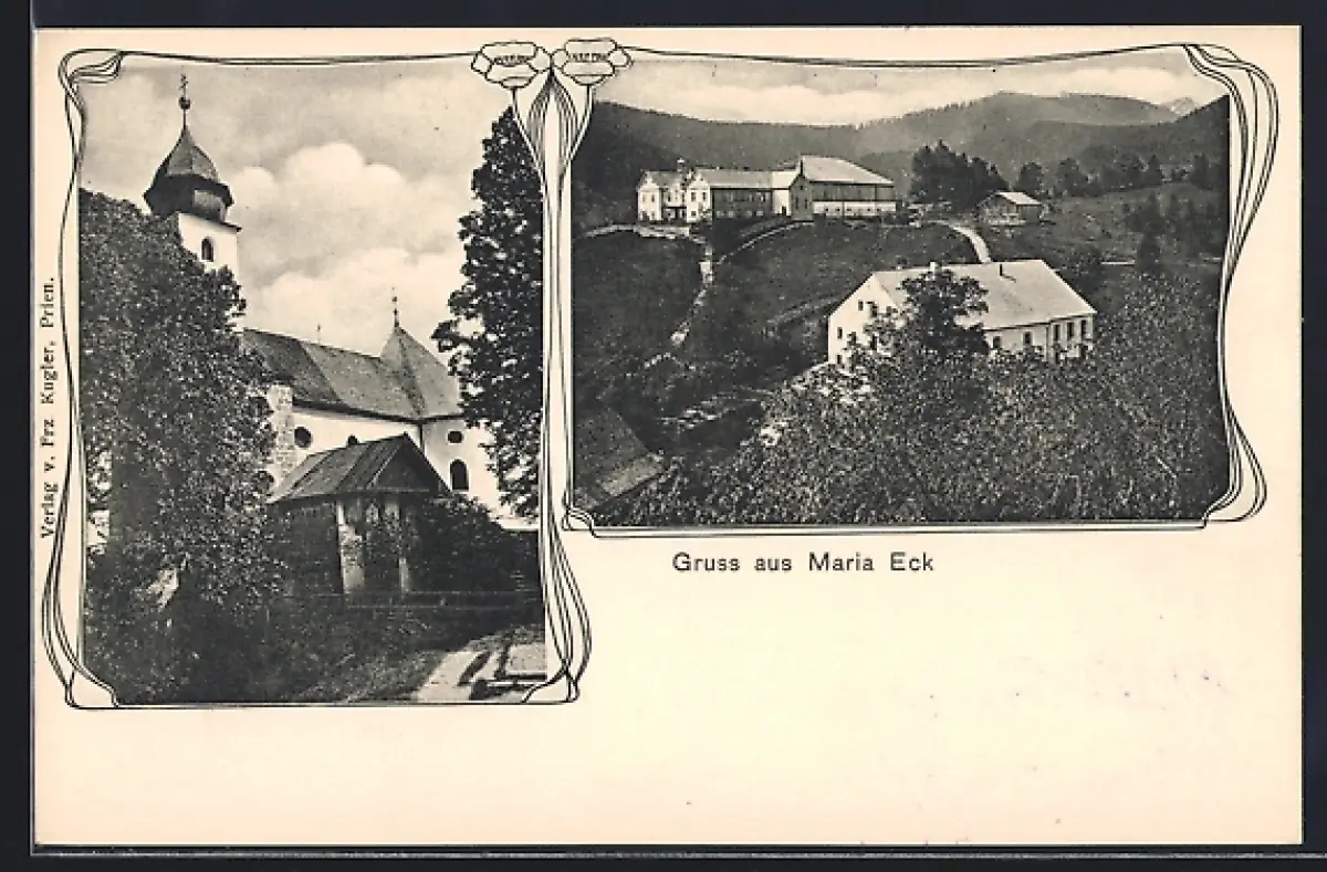 AK Maria-Eck, Ansicht der Kirche, Gebäude im Ort