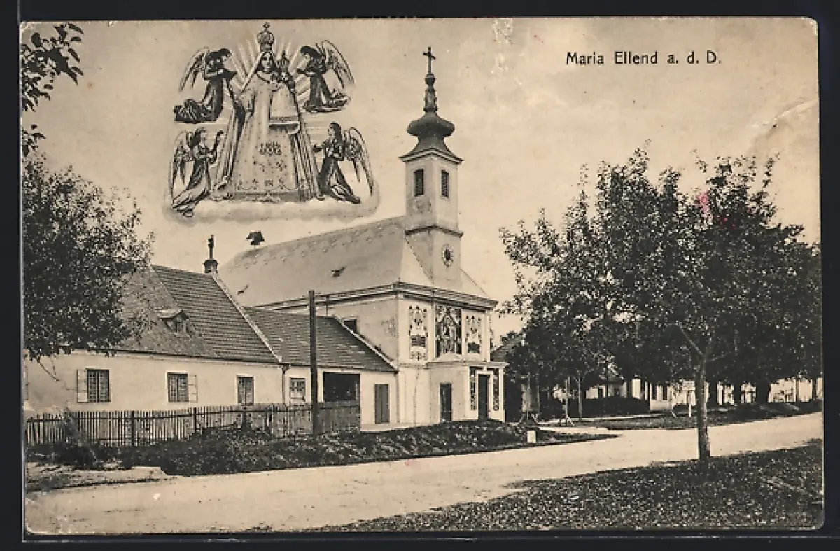 AK Maria Ellend an der Donau, Wallfahrtskirche mit Heiligenbild