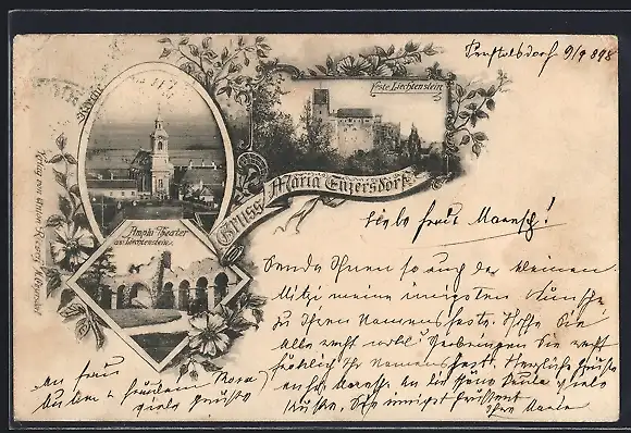 AK Maria Enzersdorf, Amphi-Theater am Liechtenstein, Veste, Kirche