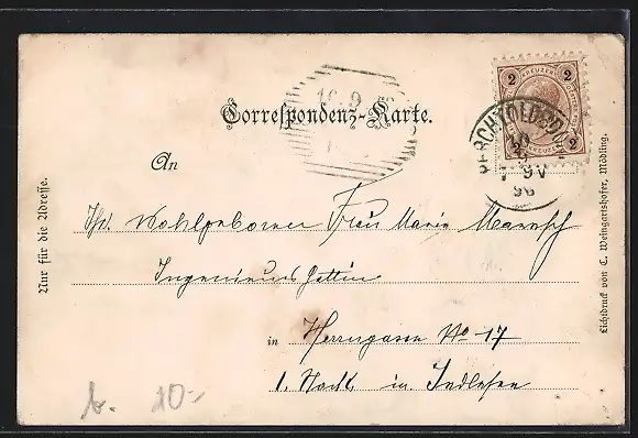 alte Ansichtskarte, gelaufen, Eckknicke li., Stempelspur, Stecknadellöcher li. unten, guter Zustand